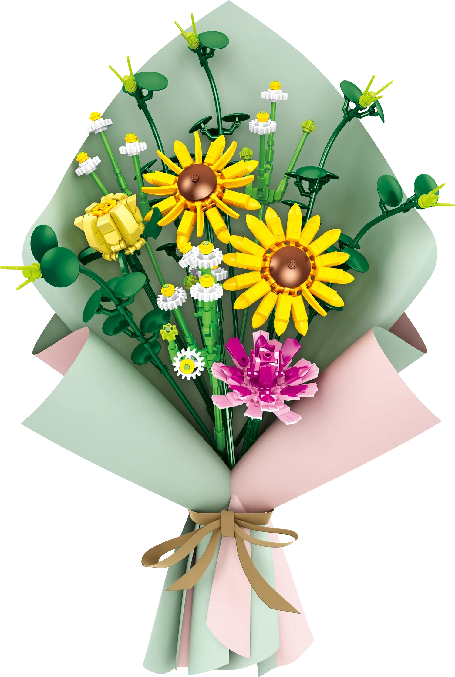DIY Flower Building Block Rose sun flower Tulip Household Potted Plant Bouquet Match Toy Decoration Assembled Bricks Girls Gift