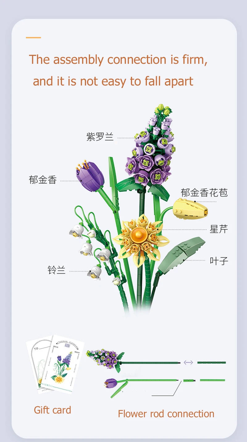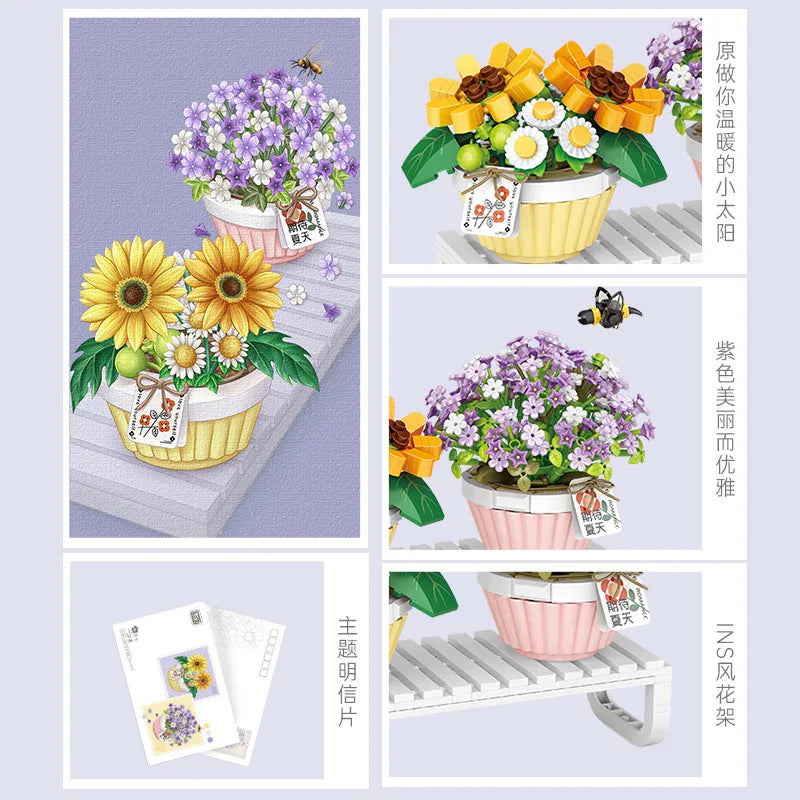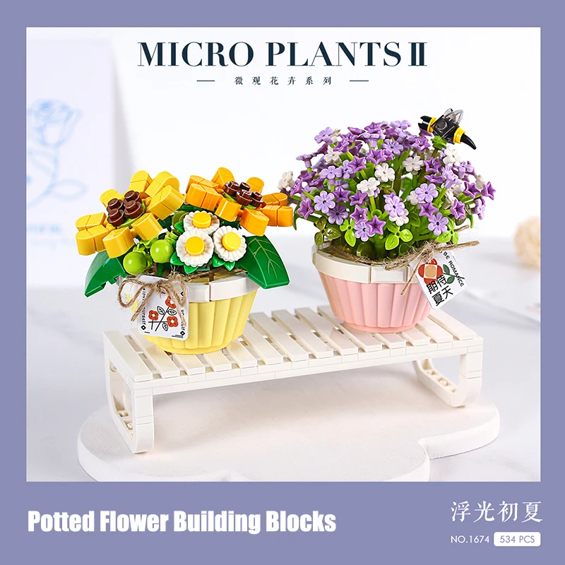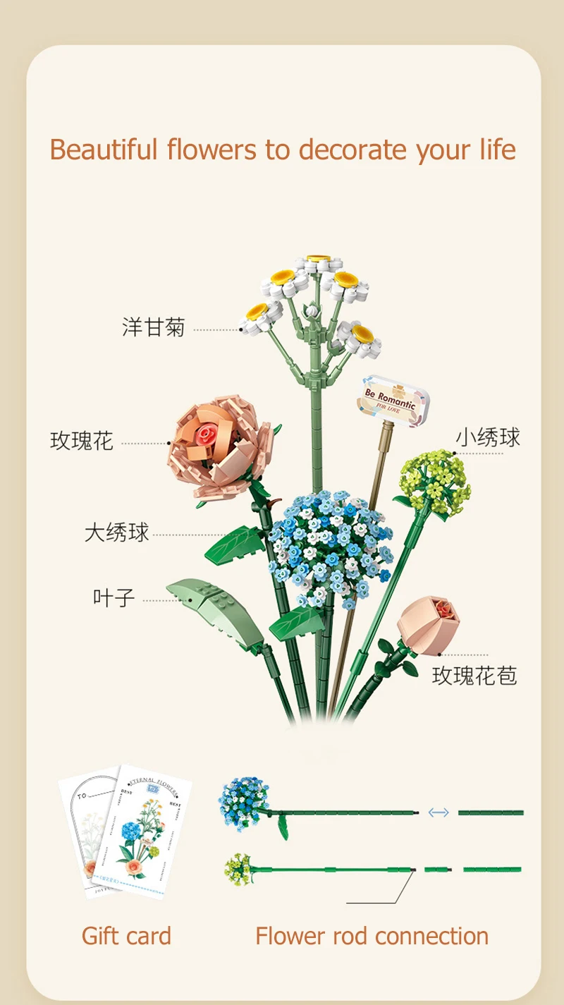 Flower Building Blocks DIY Plant Bonsai Decoration Rose