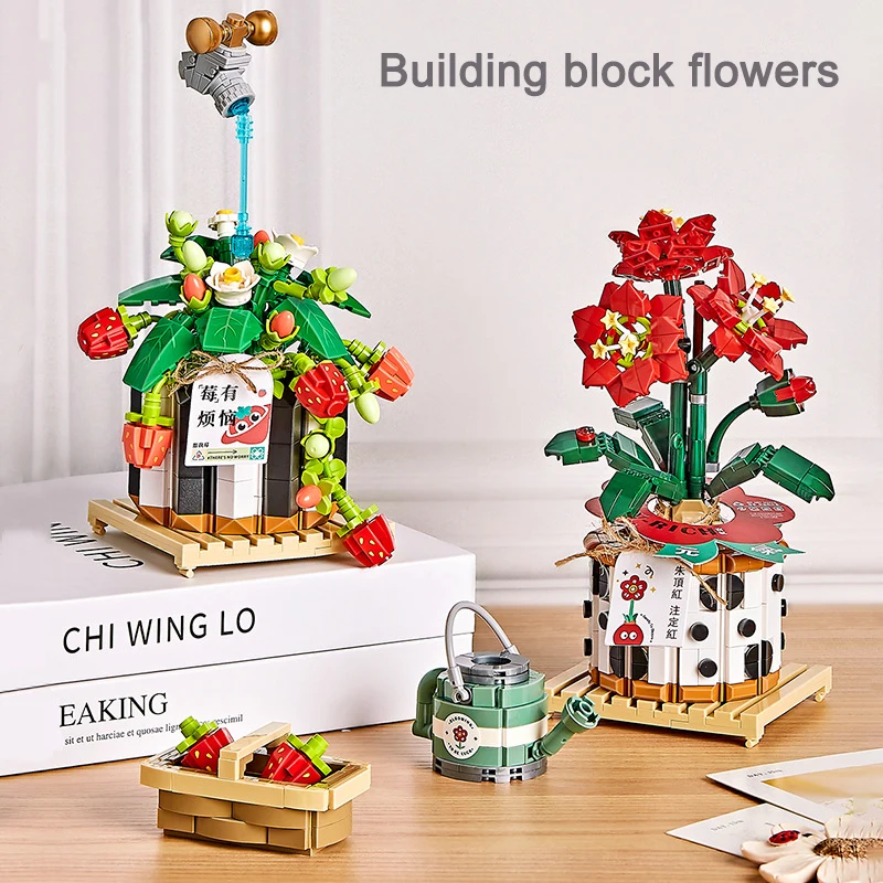 Product: Creative strawberry potted building block flower