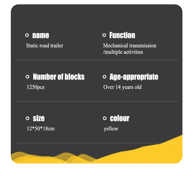 The MOLD KING 17011 road trailer building block set shows construction vehicles used in different scenarios. For construction vehicle enthusiasts, this is a good gift.