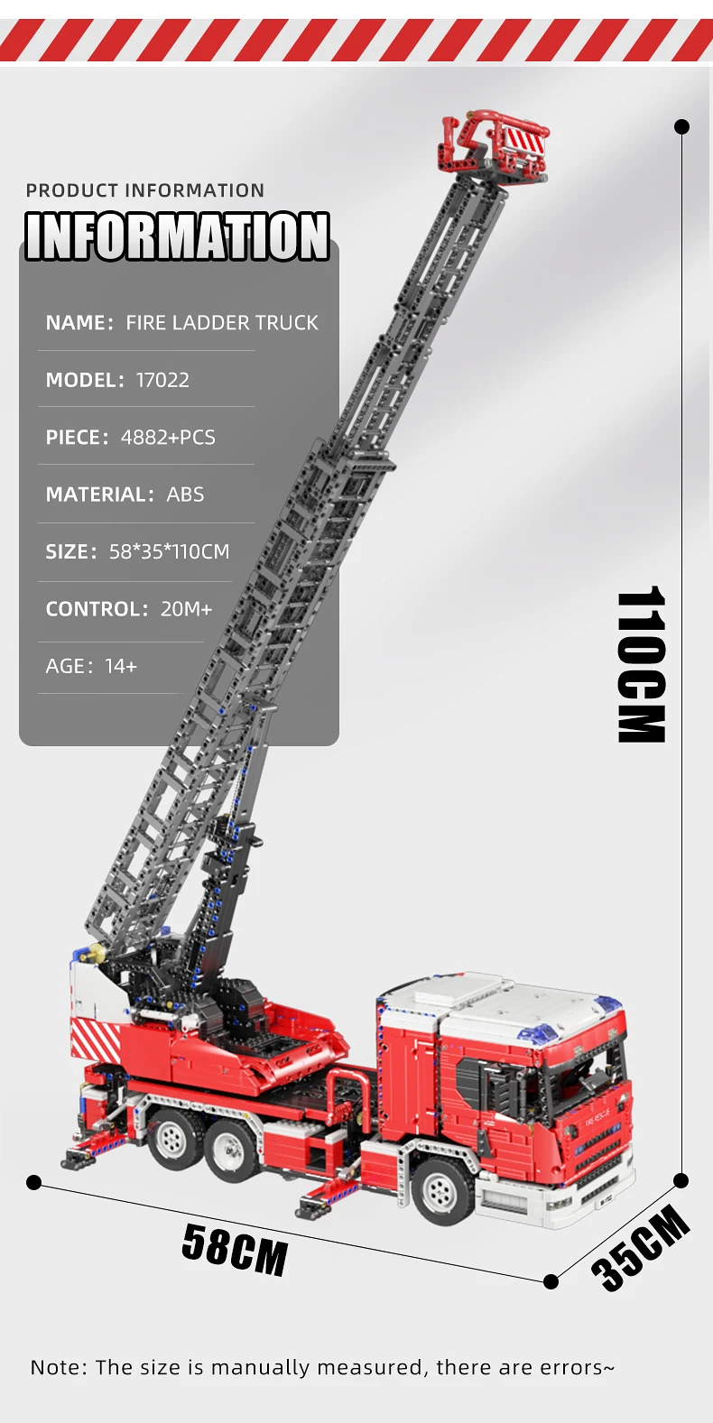 - Enthusiasts of construction vehicles should not miss this giant-sized fire ladder truck building kit. The structure of the fire fighting vehicle with full mechanical texture, the multifunctional ladder structure and the mechanical operation principle realistically restore the functionality of the real fire fighting vehicle. The dual remote control mode makes this fire ladder truck more playable. By assembling this crane model, you can learn more about the functionality and features of the construction vehicle.